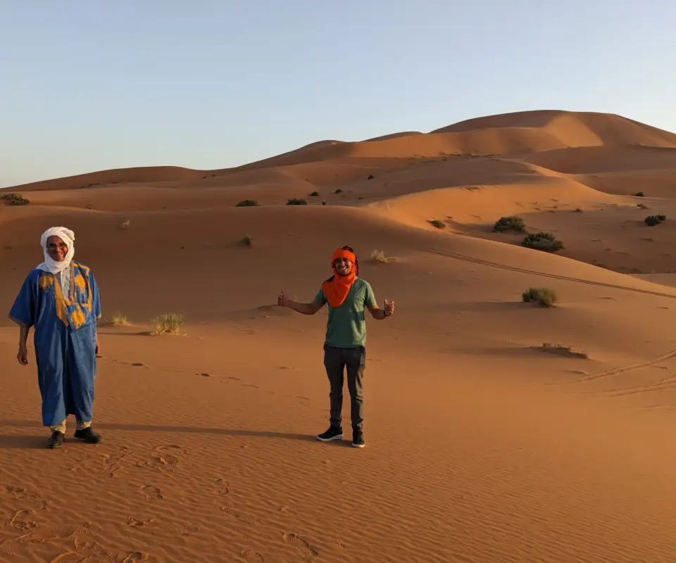 Accessibility is a clear challenge in such an environment. One of the participants, Joy, uses a wheelchair and wasn’t able to ride the camels with the rest of the group. However, she encouraged them to go ahead and have the experience with the plan that she and their tour guides would drive out to the dunes and meet them to catch the sunset together as a group. It might be a long shot — as they weren’t sure if the car could make it to the meetup point — but they were certainly going to try.