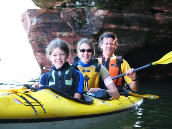 Take your family on this kid-friendly adventure on the South Shore of Lake Superior between Cornucopia and Bayfield. The Apostle Islands are known for sea caves, sandy beaches, historic lighthouses, and sunken shipwrecks. On this Apostle Islands vacation, you and your family will paddle through sea caves, hike scenic trails, and enjoy wide sandy beaches. Camp with your family among the tall hemlock trees at our cozy and well-outfitted base camp at Little Sand Bay. Our talented and caring staff will have activities to keep kids of all ages engaged and having fun.