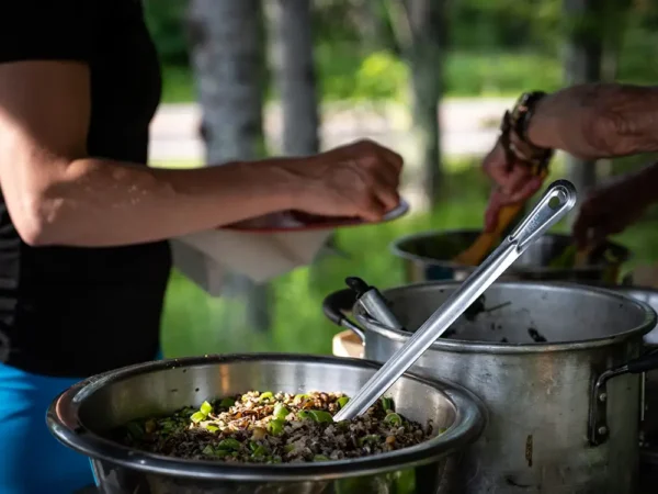 Typical menus for overnight camping trips include pesto pasta, burritos, stir-fry, avocado caprese wraps, brats and burgers, apple cobbler, and plenty of snacks. The exact menus vary trip-by-trip. On longer wilderness expeditions, we bring more nonperishable foods that keep well for days without refrigeration. On international trips, we tend to eat the local cuisine. We can accommodate most dietary restrictions and preferences — please note this information on your registration form.