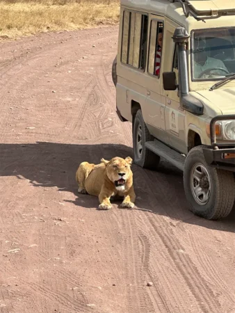 In the morning, you’ll visit the Mara River, walk a few steps into Tanzania, and trek along the riverbanks. Today, you can take a full-day game drive or choose shorter drives in the morning and afternoon.